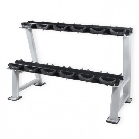 Soporte para mancuernas redondas disponible para 6, 10 o 12 pares de mancuernas.