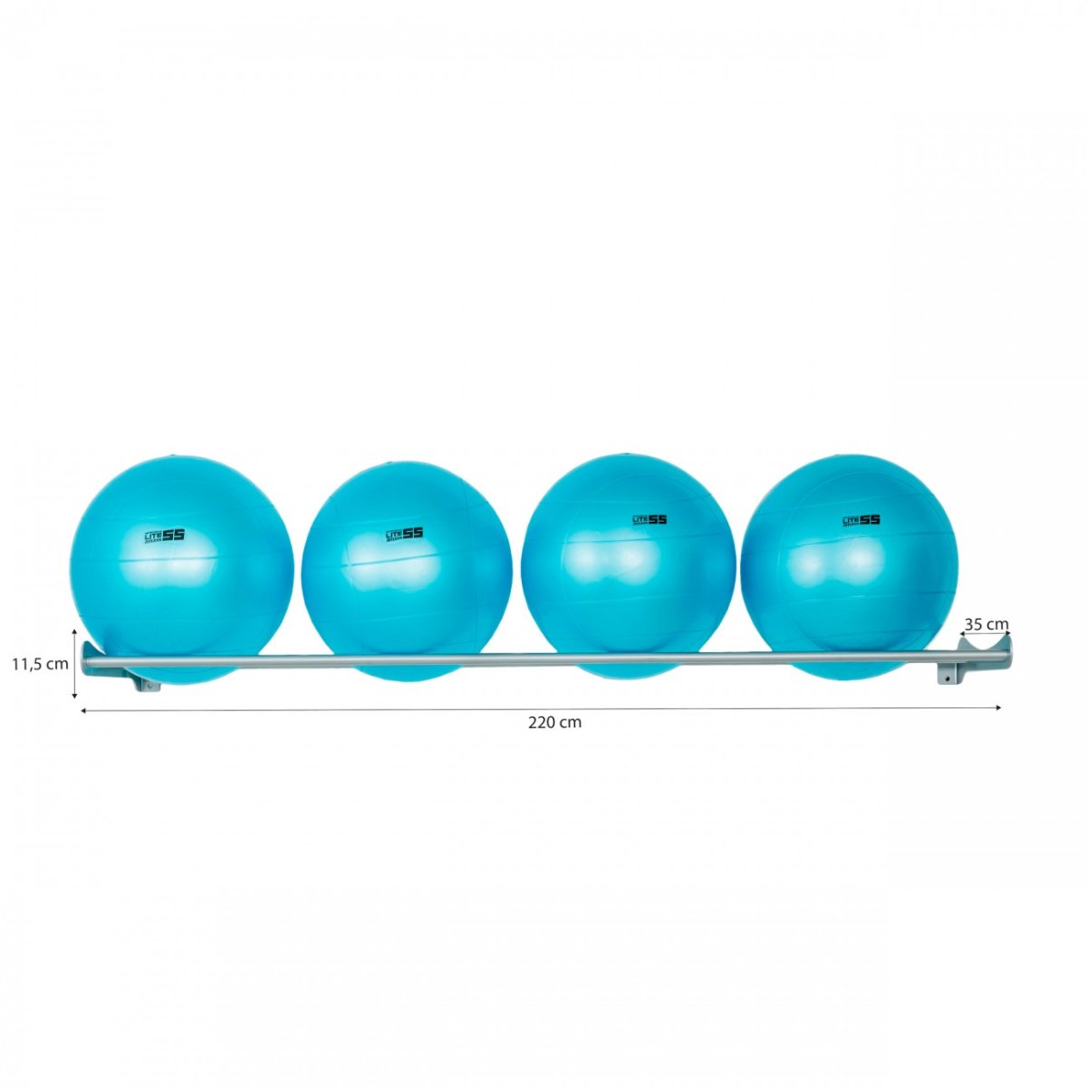 Soporte de pared de acero de gran calidad y resistencia para pelotas de fitness. Coloca varias pelotas al mismo tiempo de forma estable y con comodidad y ahorra espacio. Anclaje a la pared de forma fácil, estable y segura. No se incluyen los pelotones.