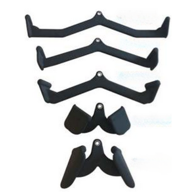 Incluye 5 agarres de polea ergonómicos de acero de alta calidad con revestimiento de goma rugosa antiadherente.
