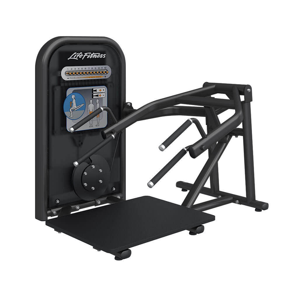 La máquina Squat de Circuit Series ofrece una rutina para el fortalecimiento del tren inferior. Como no son necesarios ajustes de configuración y sus controles con pulsador son intuitivos, la máquina de sentadillas representa una atractiva opción nueva para los entrenamientos de fuerza. Los ajustes de resistencia en incrementos permiten a los usuarios medir fácilmente su progreso, lo que resulta perfecto para grupos o entrenamientos de fuerza a largo plazo.