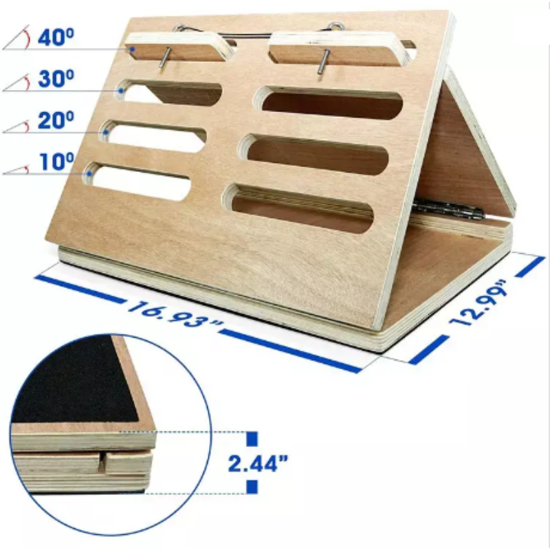 Construida con múltiples capas de madera contrachapada de alta calidad, nuestra tabla inclinada cuenta con una resistencia y resistencia excepcionales. Este diseño robusto garantiza una plataforma confiable y segura para usuarios de todos los niveles de condición física.