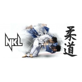 Taza blanca sublimada Nkl con imagen de judo.