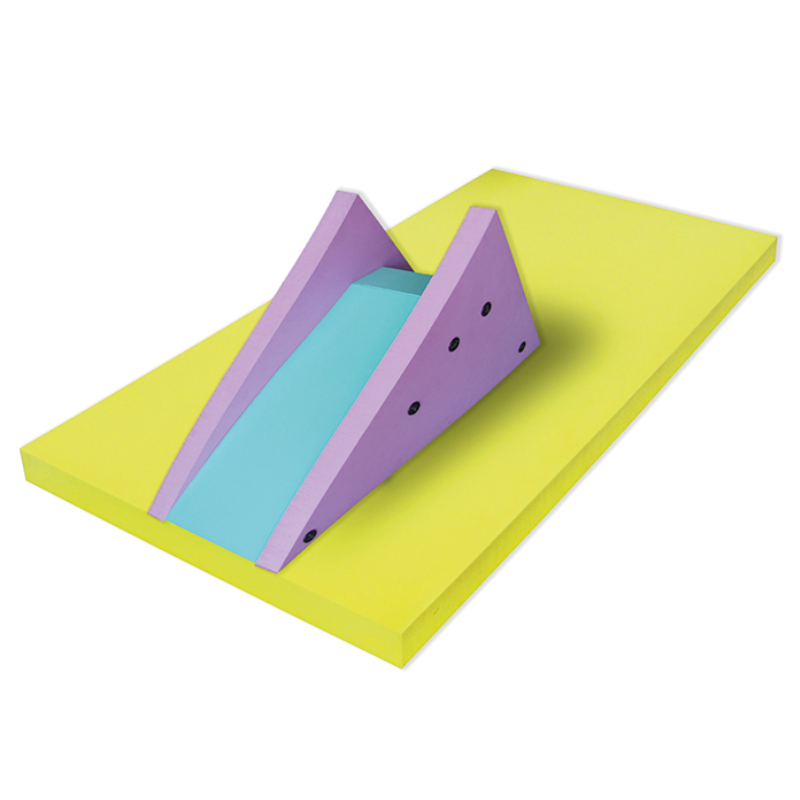 Colchoneta flotante con plataforma en forma de tobogán fabricada en Golfoam.