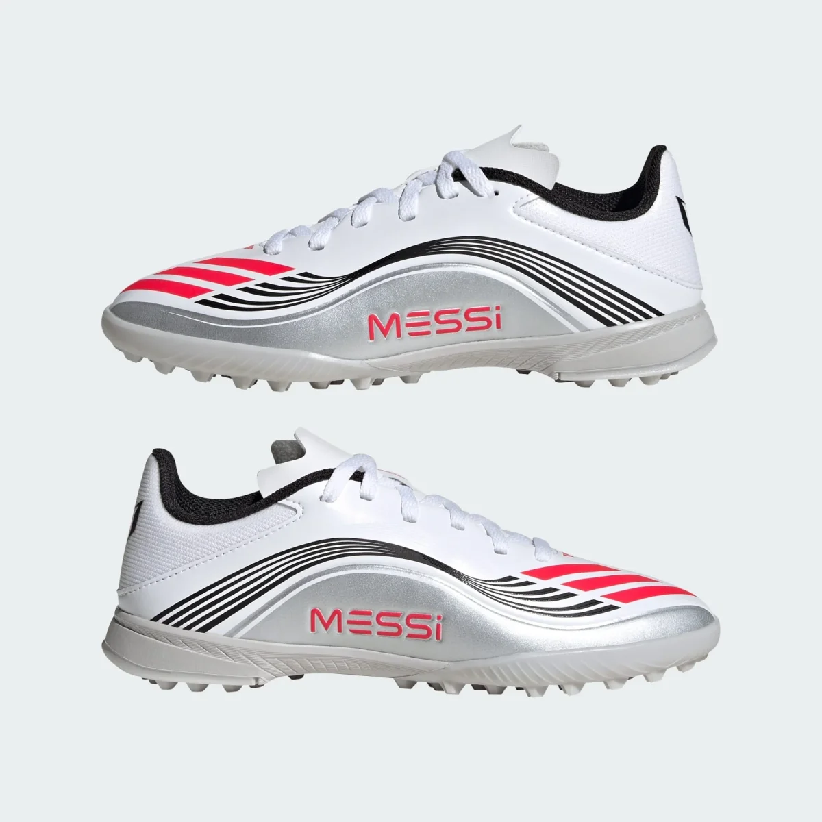 Zapatilla de Futbol Adidas F50 League Messi Blanco-Metalico TF Niño