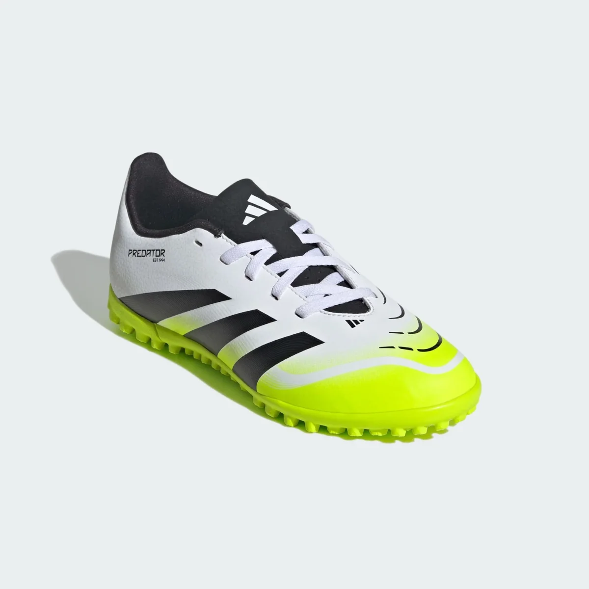 Descubre la diferencia entre aspirar a marcar y saber que lo harás con los zapatos de fútbol adidas Predator, diseñados para marcar goles. Estos zapatos de fútbol Club para jóvenes tienen un exterior de material sintético revestido con una textura Strikeprint de máximo agarre para un mejor control del balón. Su suela de caucho con tache está diseñada para colocarte en las mejores posiciones de tiro en canchas de césped artificial.