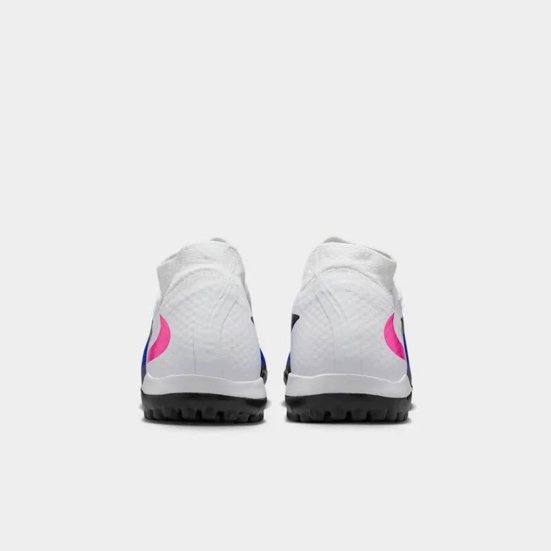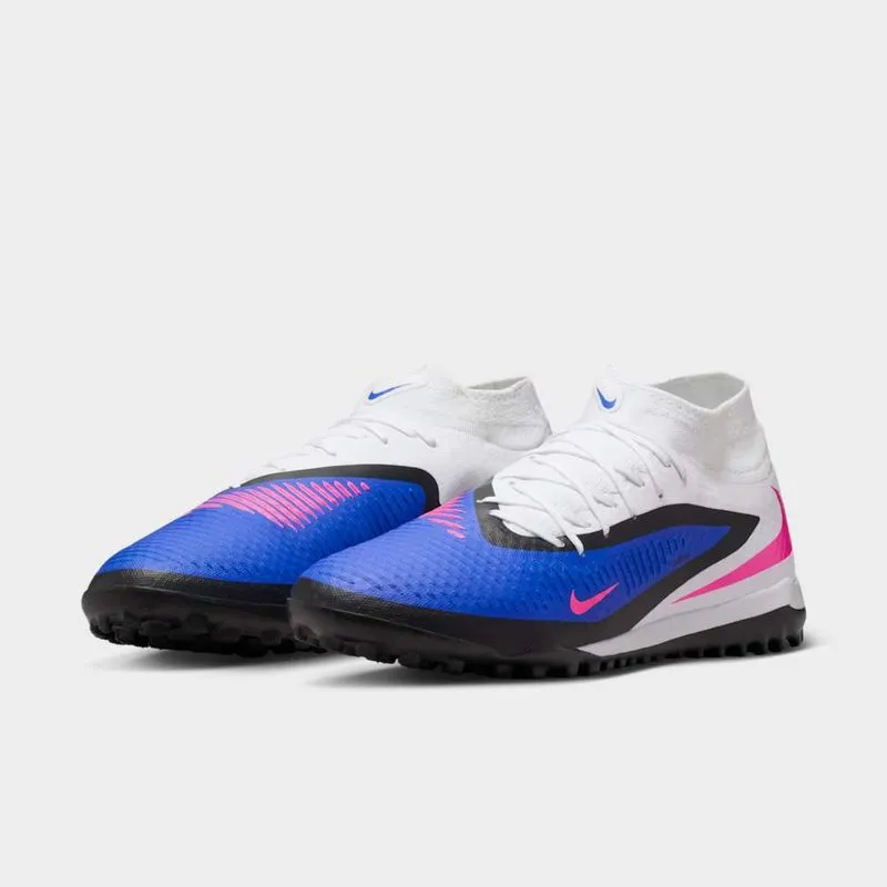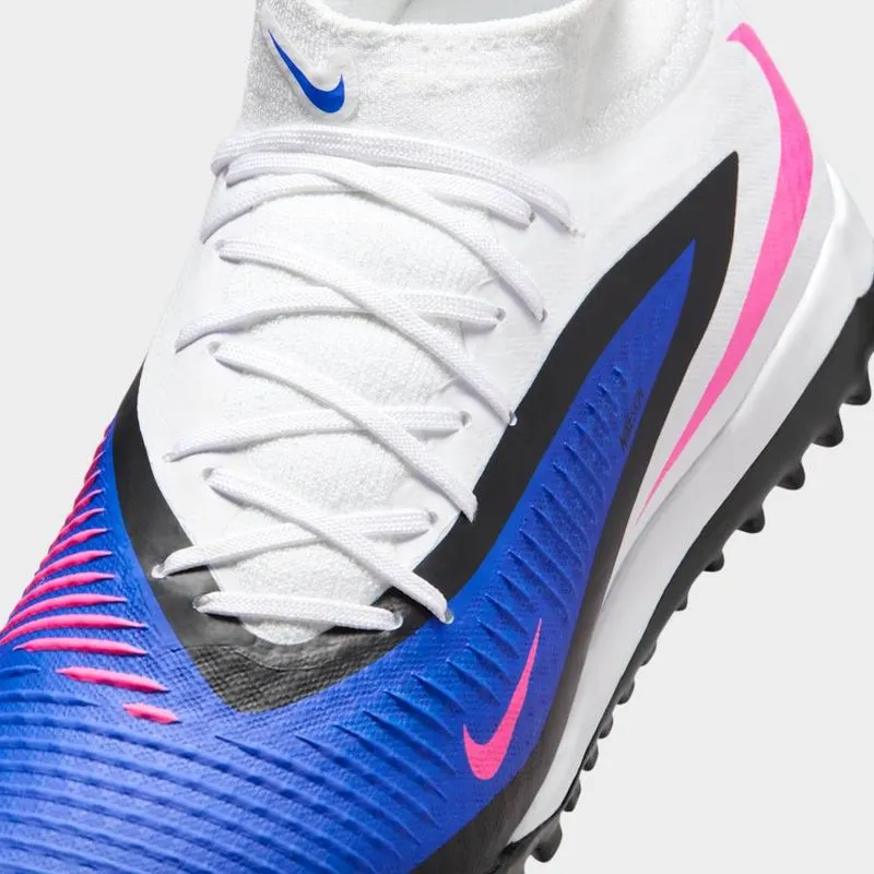 La zona de contacto NikeSkin ampliada, con malla diseñada estratégicamente, proporciona un mejor contacto del pie con el balón. Esto se traduce en un mejor control del regate y los pases, incluso en condiciones húmedas o secas. La suela de goma ofrece tracción para superficies de pasto sintético (turf). Nuevo marco para un ajuste más natural, especialmente en la punta. Se amolda al pie y mejora el contacto con el balón al patear. La zona del tobillo con Dynamic Fit envuelve el tobillo con material Flyknit suave y elástico para proporcionar un ajuste seguro. La espuma ReactX Foam en la entresuela proporciona responsividad en cada pisada. Es un 13% más reactiva que la tecnología React anterior.
