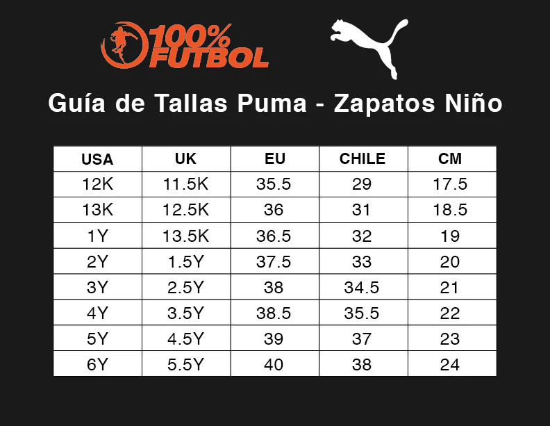 - PUMA Juvenil: Producto recomendado para niños y adolescentes de 8 a 16 años