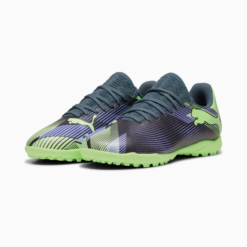 Jugadores, adéntrense en FUTURE. La suave capellada de estos botines FUTURE 7 PLAY TT juvenil combina un material sintético liviano y duradero con un cuello elástico que proporciona sujeción. Cuando te vestís de FUTURE, sos el futuro. Empezá a crearlo.