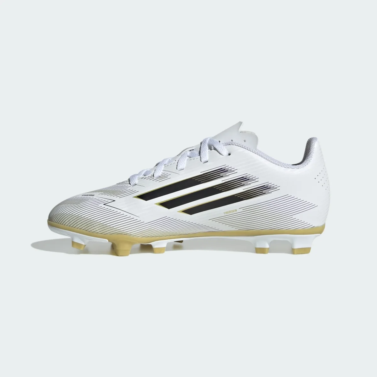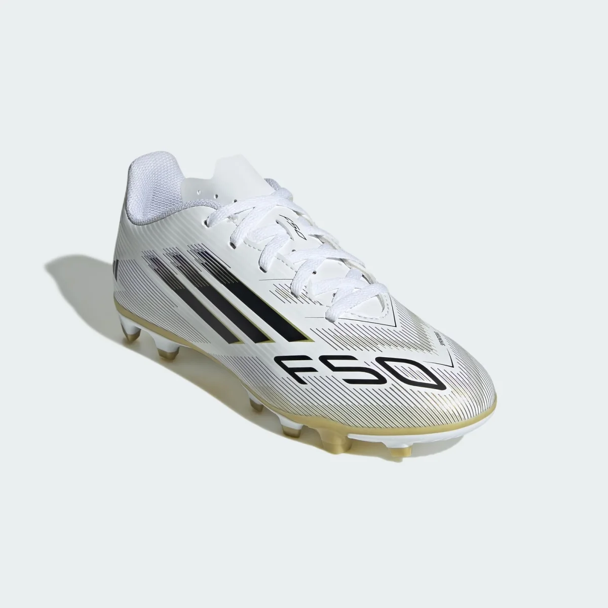 Encuentra tu rapidez para realmente expresarte en el campo. Siente la adrenalina con los zapatos de fútbol adidas F50, hechos para correr. Estos zapatos de fútbol Club para jóvenes te mantienen cómodo cuando estás en movimiento con su exterior de material sintético ligero y su lengüeta perforada. Dales la vuelta y encontrarás una suela que favorece el juego rápido en terreno firme y canchas de pasto artificial.