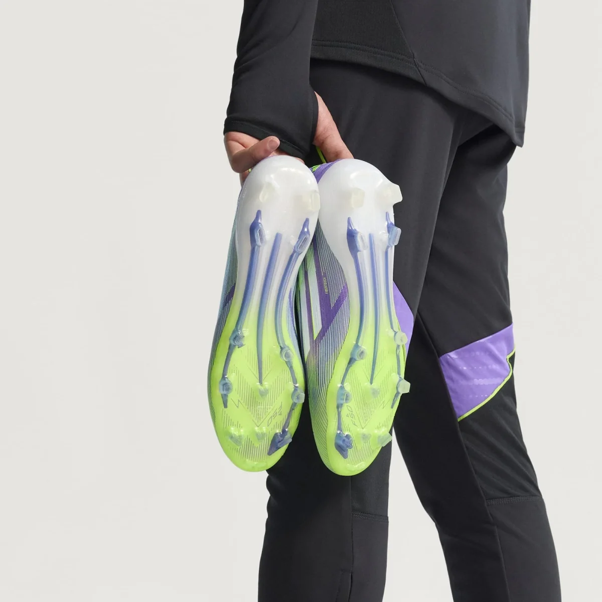 Zapatos de fútbol sin cordones, para terreno firme y aceleración rápida.