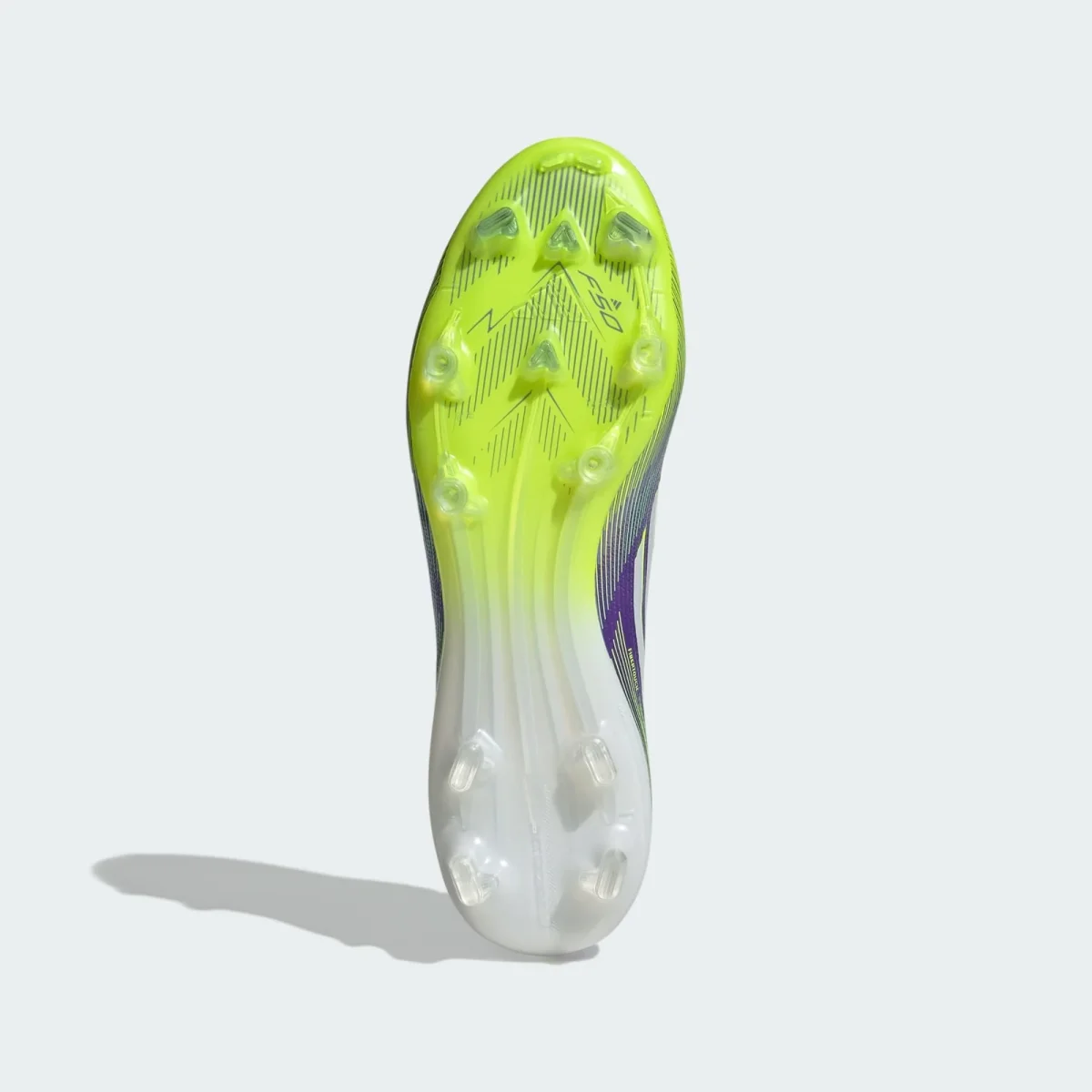 Encuentra tu rapidez para realmente expresarte en el campo. Siente la adrenalina con los zapatos de fútbol adidas F50, hechos para correr. El exterior ligero Fibertouch de estos zapatos de fútbol Pro tiene textura Sprintweb 3D para mantener la pelota cerca, y una lengüeta de túnel con ajuste de compresión para mayor sujeción. Debajo, una suela Sprintshell 360 favorece el juego rápido sobre hierba seca.