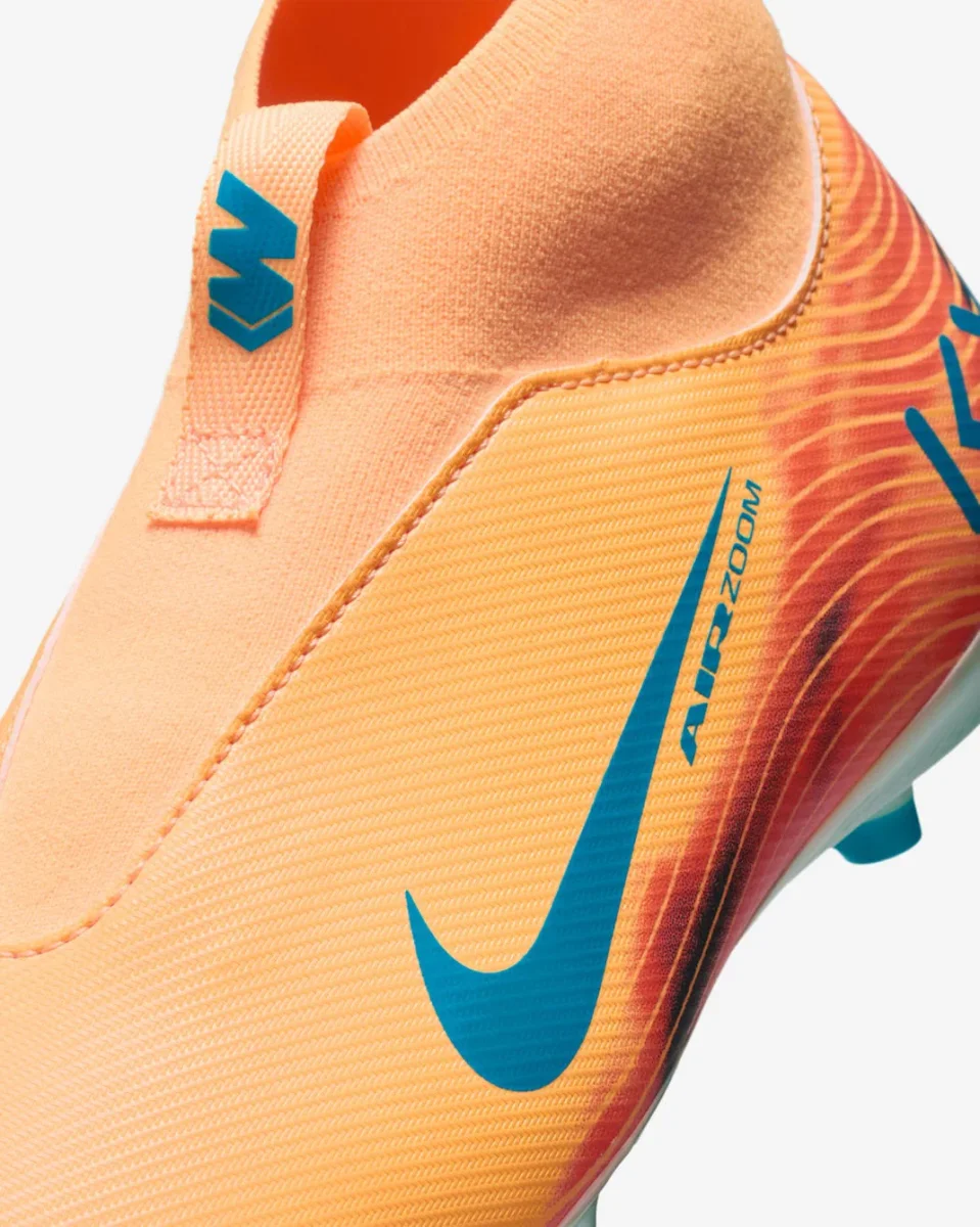 ¿Buscas llevar tu velocidad al siguiente nivel? Diseñamos estos calzados Academy con una unidad Air Zoom mejorada en el talón. Te brinda a ti y a Kylian Mbappé la sensación de propulsión necesaria para abrirte paso entre la defensa. El resultado son los Mercurial con mayor capacidad de respuesta que hemos creado, para que puedas brillar con velocidad y anotar.