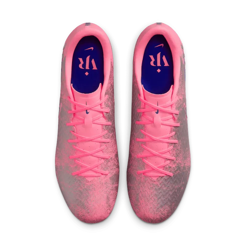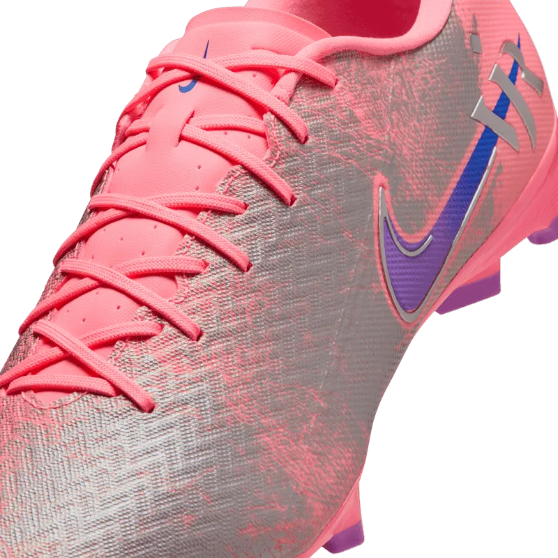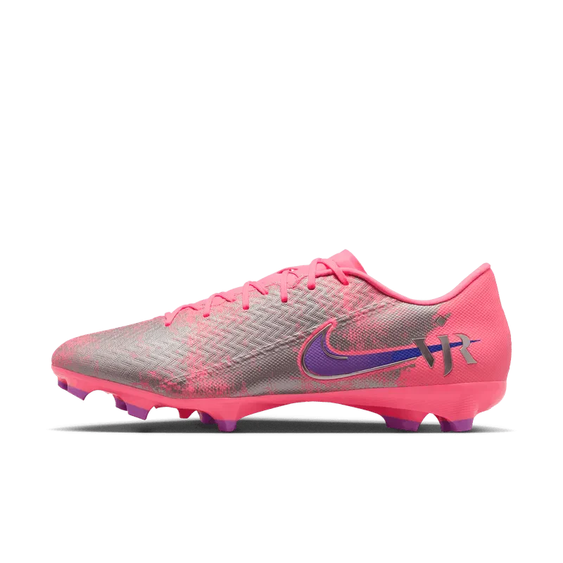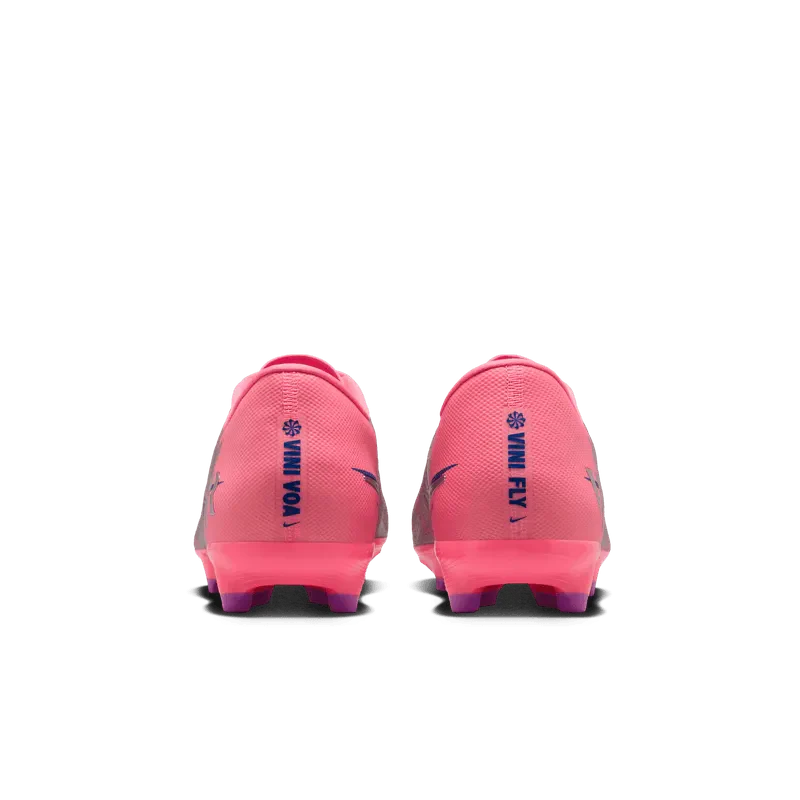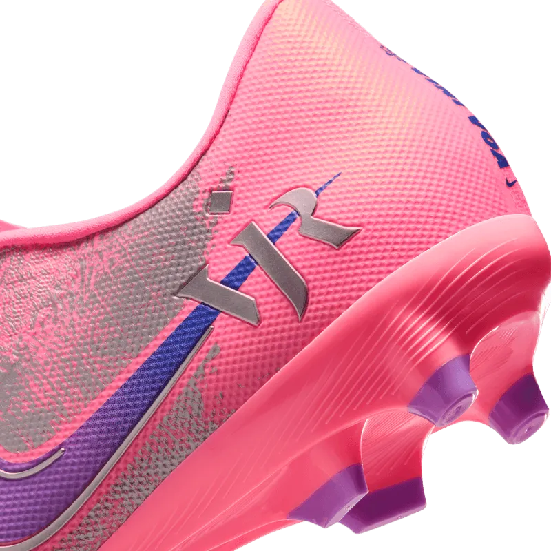 La estética de este modelo tiene un trasfondo especial. La capa metálica exterior es un homenaje al estilo vibrante de Vini Jr. y su pasión de toda la vida por los calzados de colores intensos. Por debajo, la segunda capa simboliza todo el esfuerzo y el trabajo silencioso que el jugador realizó «detrás de escena» para llegar a la cima y ganarse el derecho de portar un diseño de este nivel.