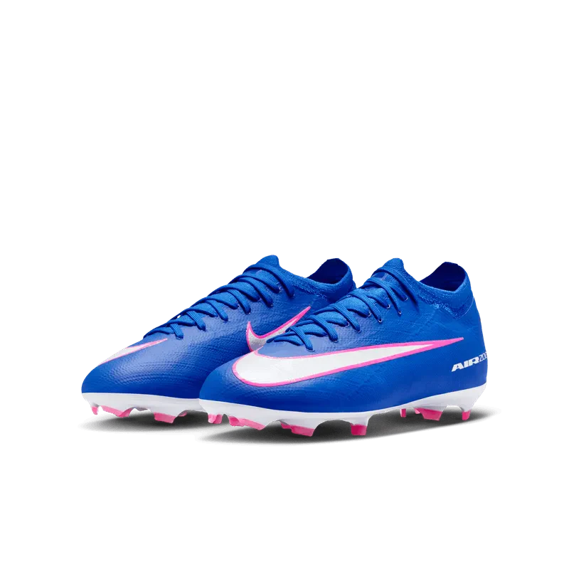 ¿Te tomas en serio tu deporte y quieres correr a toda velocidad para marcar goles? Los Jr. Vapor 16 Pro incorporan una unidad Air Zoom mejorada en el talón para ayudarte a alcanzar tu máxima rapidez. Ofrecen una sensación de propulsión ideal para arrancar desde la línea de fondo y superar rivales. Lleva tu juego al siguiente nivel con innovaciones de Nike como la parte superior Flyknit, que hace que los tacos sean más livianos para que juegues aún más rápido.