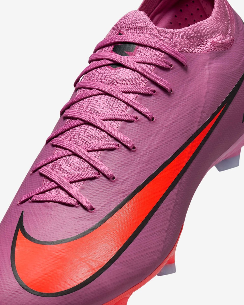 Por primera vez en Mercurial, hemos desarrollado una parte superior completamente Flyknit. Está optimizada para las necesidades del juego y filtrada por Mercurial, por lo que está diseñada para la velocidad. Un Flyknit increíblemente ligero y resistente en los paneles laterales proporciona sujeción y te acerca al balón.